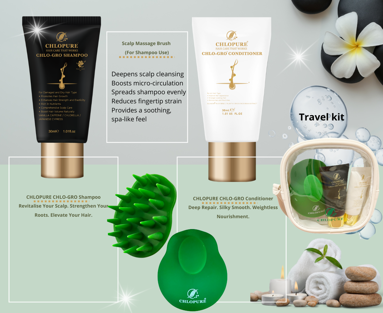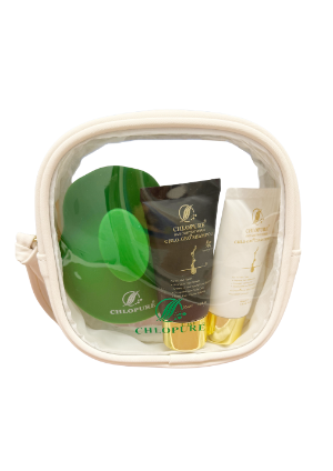 Purchase the complete set of Chlopure Skincare products and received a delicate makeup bag as a gift.